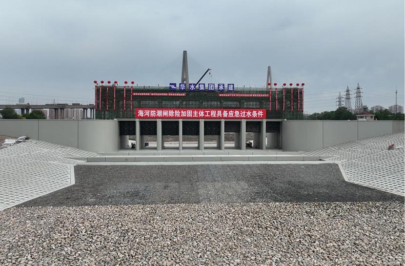 海河防潮闸是天津市六大军事文物之一,是一座具有泄洪、排涝、挡潮兼顾航运等综合利用的大型水闸,是保障流域和天津市防洪防潮安全的重要控制性工程,项目的如期竣工具有重要和深远意义。